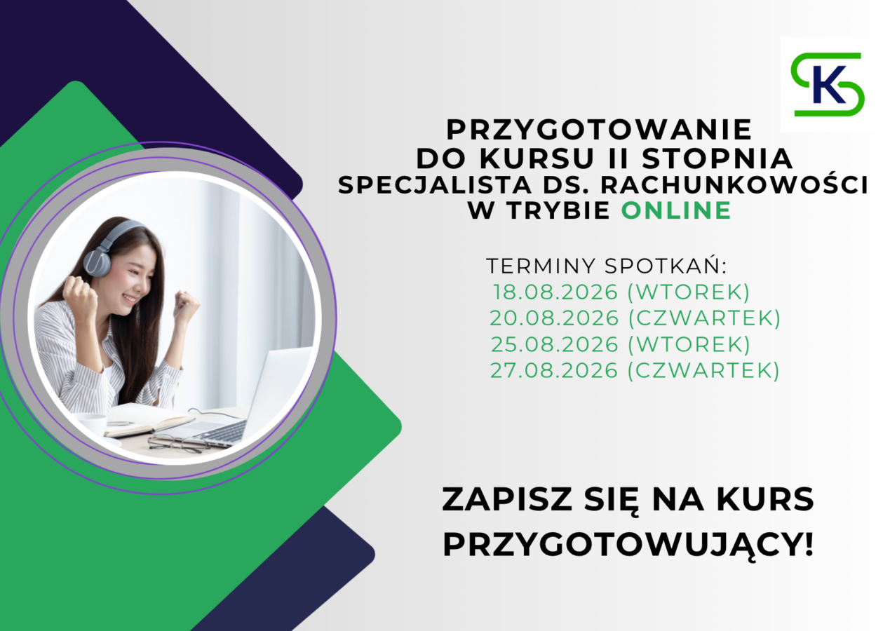 Zaliczona praca kontrolna będzie kwalifikowała na kurs "Dla kandydatów na specjalistę ds. rachunkowości - II stopień” realizowany w SKwP Oddział Podkarpacki w Rzeszowie.